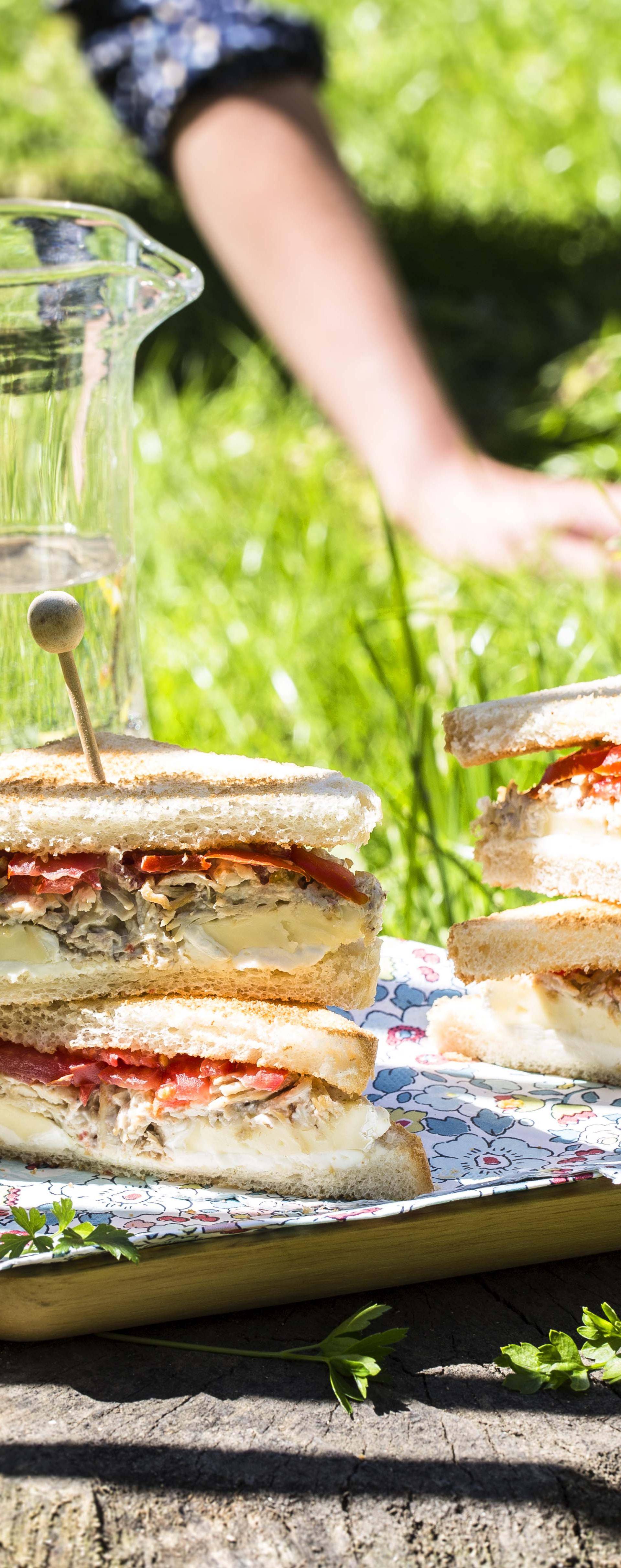 Изцедете и след това добавете прясното сирене, като разбърквате. Пригответе сандвичите с всички съставки.