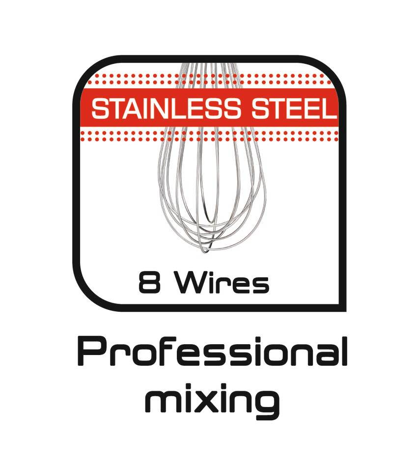 Издръжлива балонна бъркалка с осем жици от неръждаема стомана за надеждна работа отново и отново Бъркалка от неръждаема стомана, подходяща за миене в съдомиялна машина, за лесно почистване и изключително удобство в ежедневието Силиконовият предпазен пръстен предпазва края за готвене на бъркалката от контакт с работната ви повърхност за оптимална хигиена Произведена в съответствие със стандартите за качество на Tefal със строги лабораторни тестове преди пускане на пазара