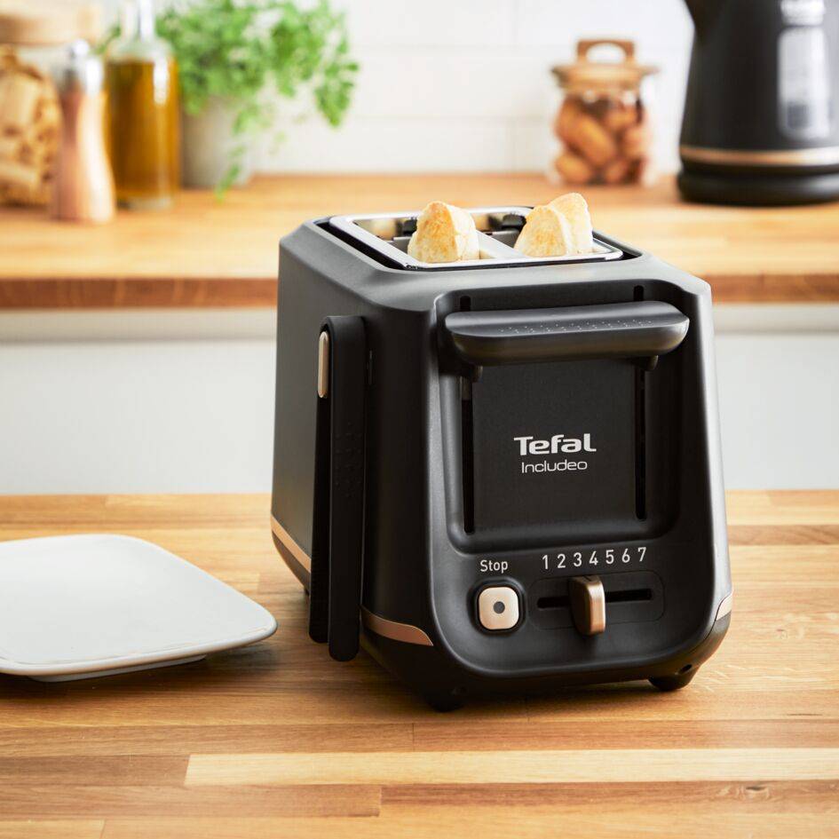 Представяме ви гамата Tefal Includeo , създадена от нашите дизайнери в сътрудничество с потребителите, за да отговори на нуждите на всеки! Ергономичният тостер Tefal Includeo е оборудван с набор от лесни за използване функции: два изключително широки отвора, добре видими и четливи контроли, магнитни щипки за тостер и бутон за повдигане за безопасно изваждане на вашите филийки хляб. Със седем степени на изпичане, от които можете да избирате, за да приготвите препечен хляб точно по начина, по който го харесвате, този тостер е идеален за ежедневна употреба!