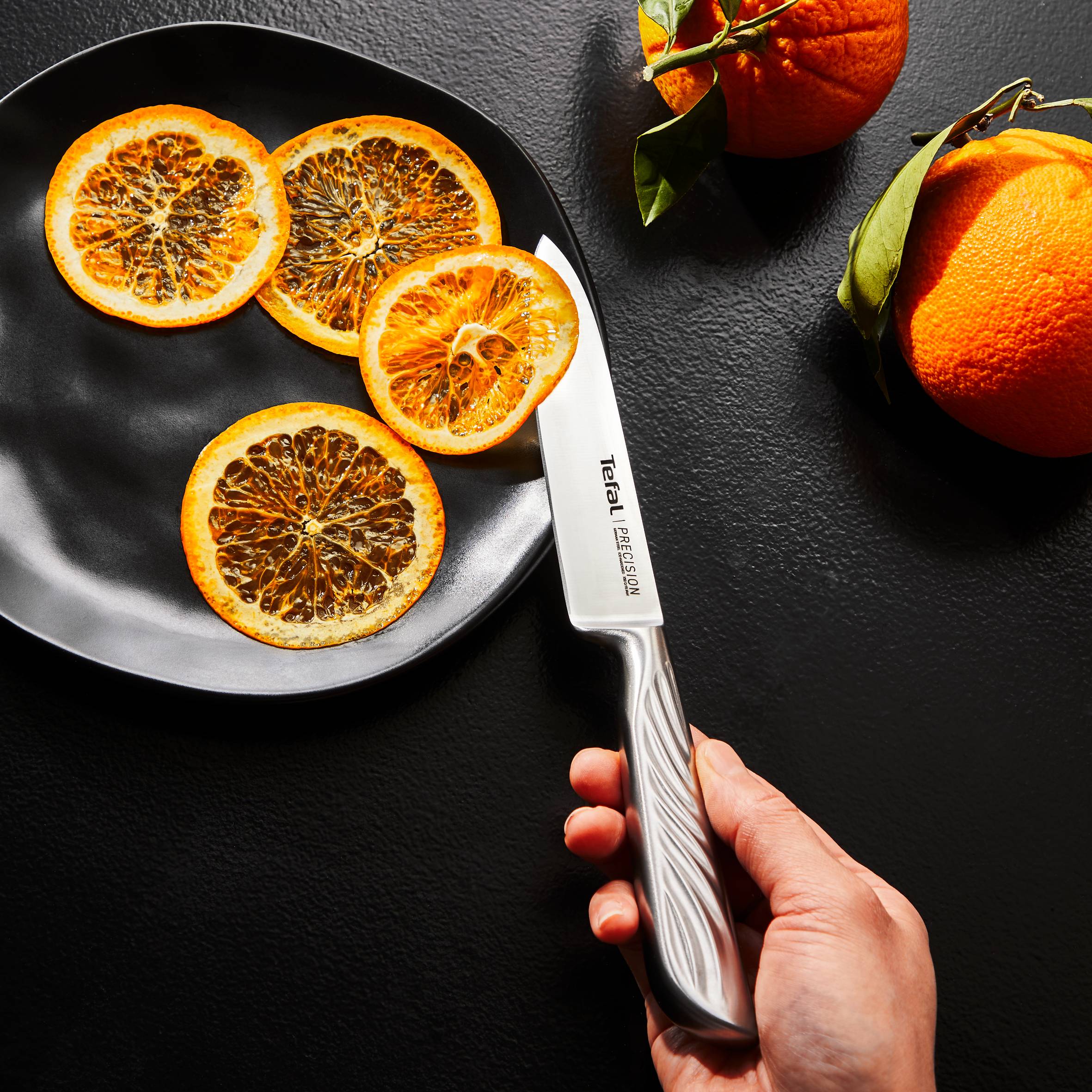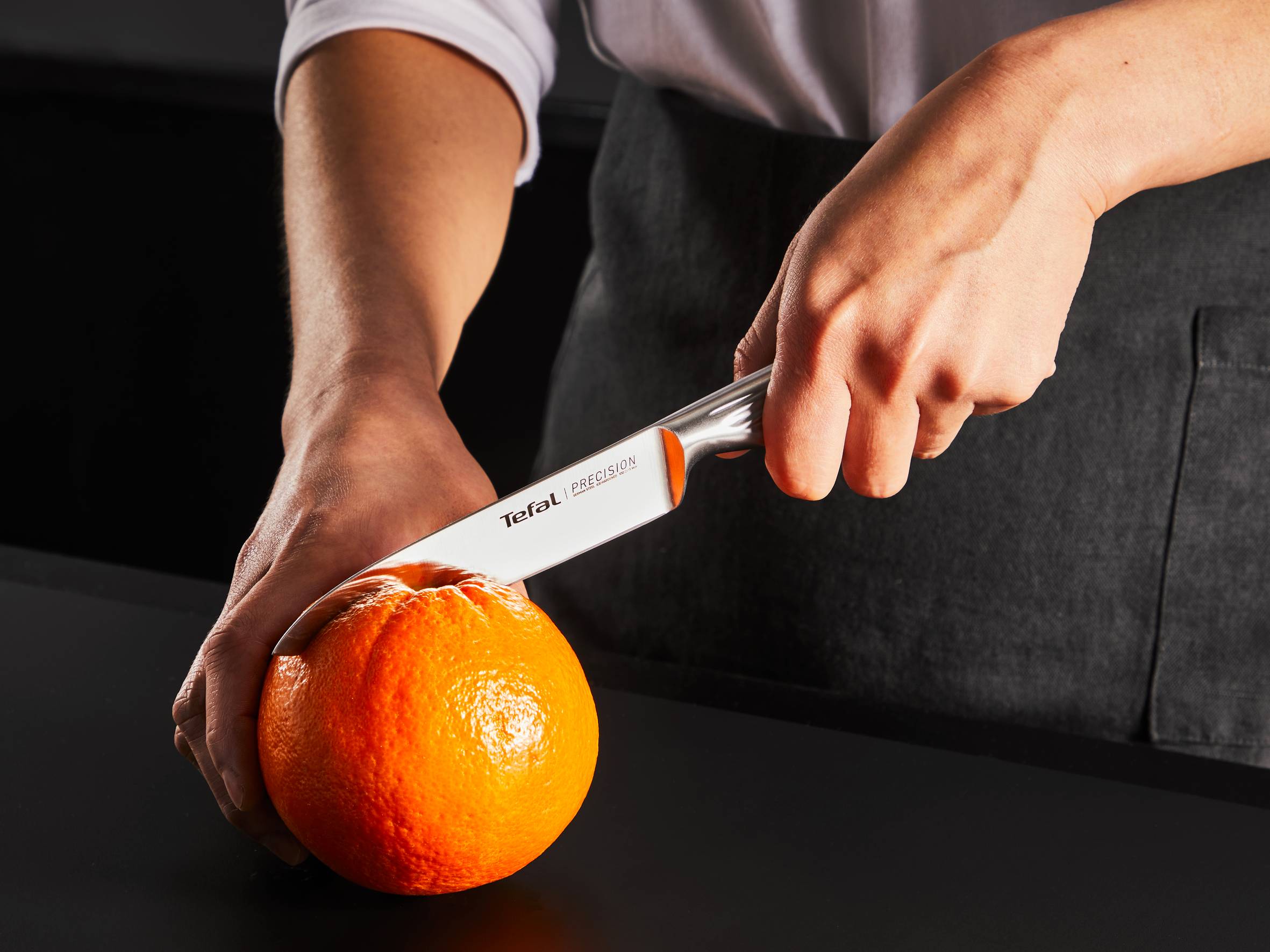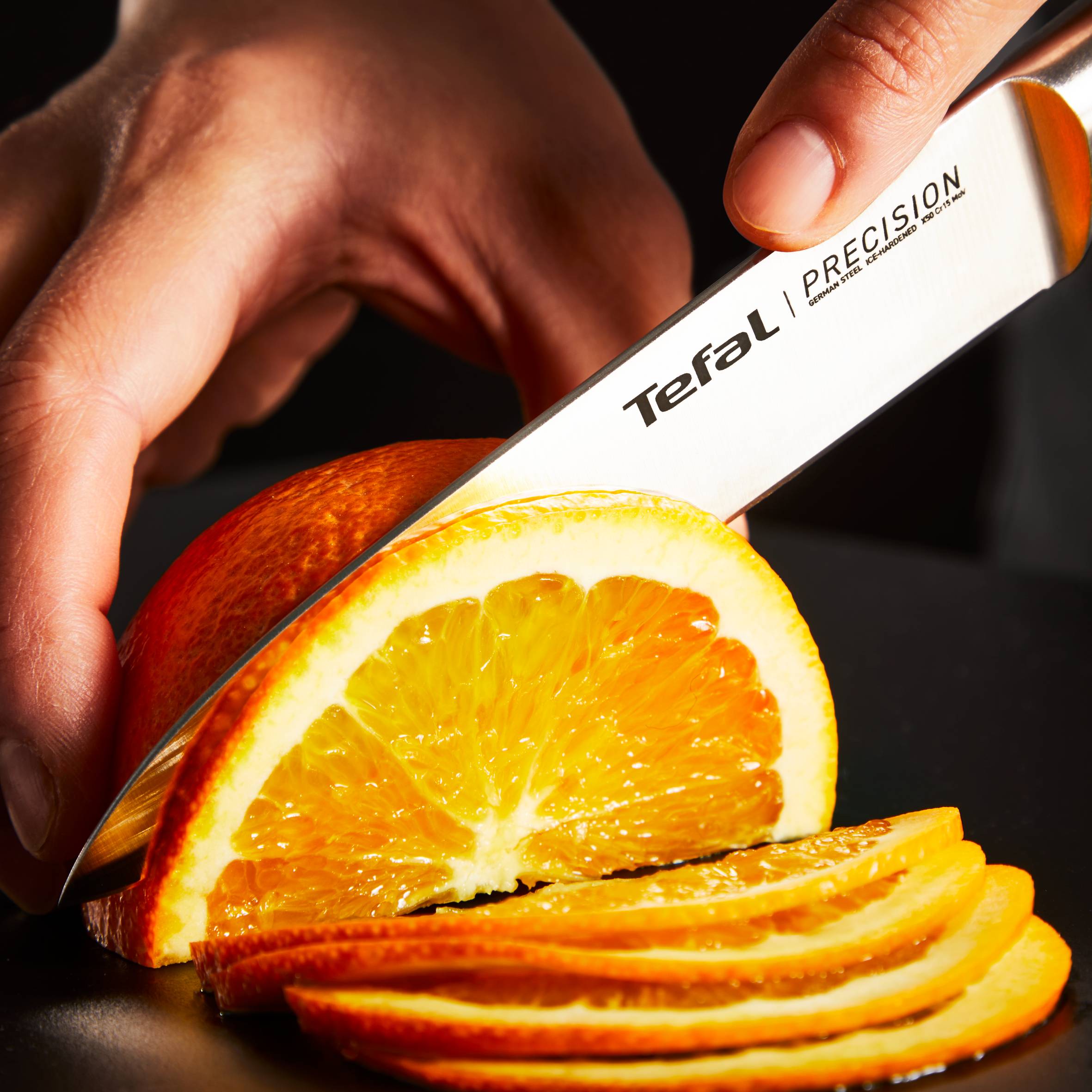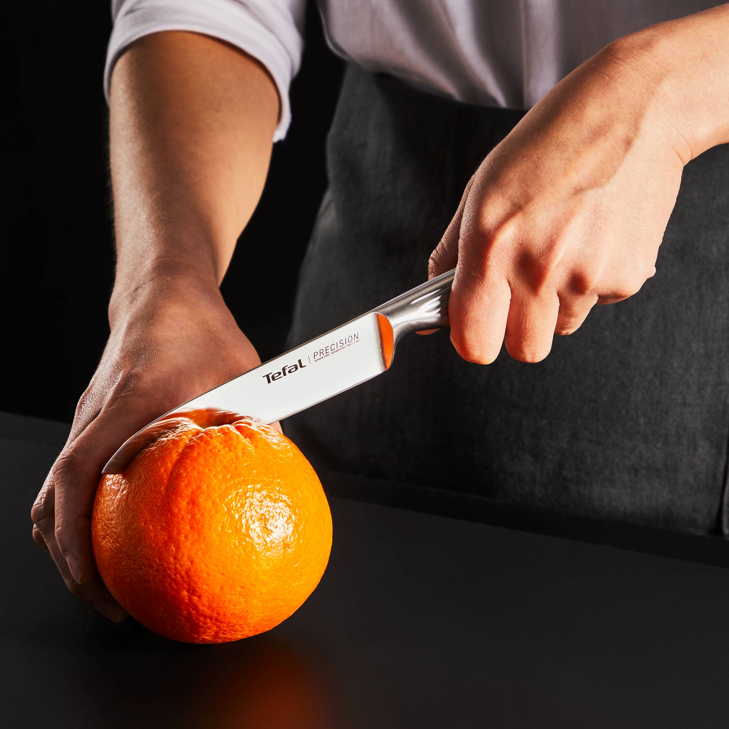 Открийте Precision - серията с най-острите ножове на Tefal, и се насладете на перфектно, прецизно рязане всеки път. Това са кухненските ножове, които гарантират безпроблемна обработка на всеки хранителен продукт и изглеждат елегантно! Насладете се на изискан форма и безкраен комфорт в ръката си. Изработени изцяло от немска неръждаема стомана и с остриета, преминали специален процес на криогенно закаляване, ножовете Precision се отличават с дълготрайна ефективност, изключителна здравина и устойчивост на корозия