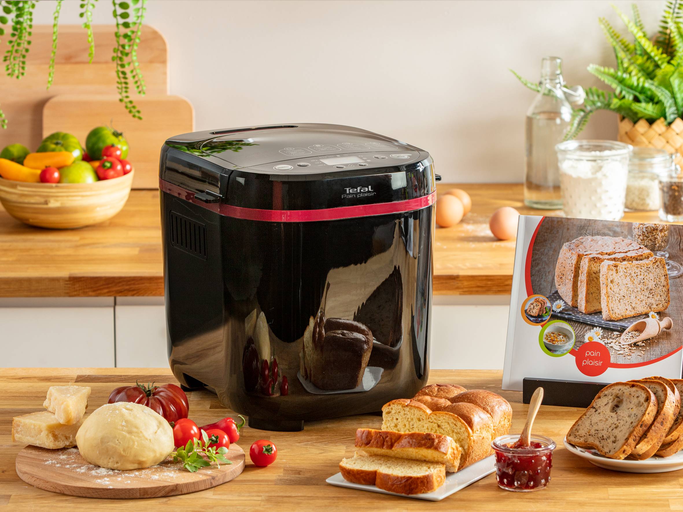 Pain & Plaisir е решението за приготвяне на вкусен, здравословен пресен хляб у дома. Можете да бъдете креативни, като използвате някоя от 17те програми, посветени на перфектния хляб, бриош и други. Идеален за хора с непоносимост към глутен или хора със специални здравословни нужди, Pain & Plaisir ви дава удобството да имате прясно изпечен хляб, съобразен с вашите вкусове и необходимости! Това е лесно: 3-те безглутенови програми ви позволяват да печете здравословни питки, сладкиши и сладък хляб, докато широка гама безглутенови брашна и смеси могат да се използват за повече разнообразие. В широката гама от опции ще намерите тестени изделия, каши, зърнени храни и програми за конфитюр. Открийте ги в специалната книга с рецепти! Функцията за отложен старт ви позволява да се събуждате с пресен хляб всеки ден! Изберете от три различни степени на изпичане на кората : светъл, среден или тъмен и три различни грамажа. С Pain & Plaisir няма нужда да правите избор между вкус и благополучие!