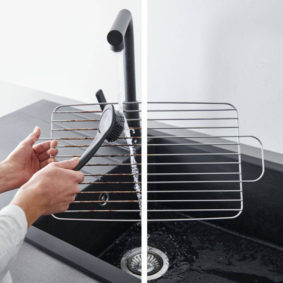 Справете се с най-досадната част от гриловането с тази удобна четка за грил - предназначена за лесно почистване в дълбочина на всички видове решетки за грил Мека четка за почистване без надраскване, разработена за почистване на уреди с незалепващо покритие (да не се използва върху горещи повърхности) Дълга дръжка за лесен достъп за почистване на всеки ъгъл на вашия уред, осигуряваща допълнителен комфорт Подходяща за миене в съдомиялна машина за бързо и безпроблемно почистване Част от пълната колекция аксесоари за грил - идеални за създаване на впечатляващи рецепти с пълна лекота