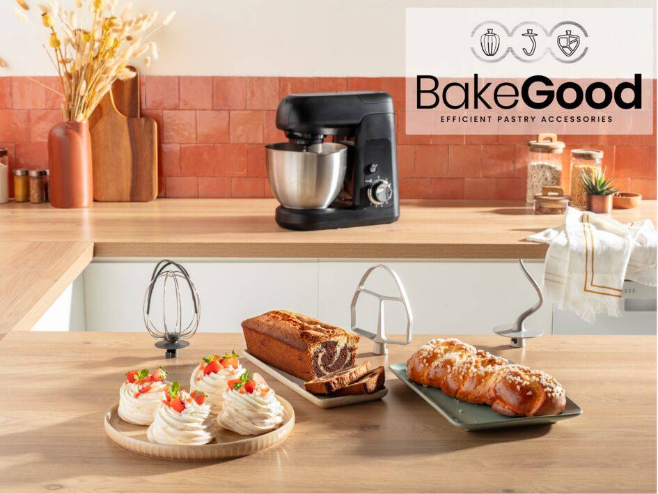 С новия ни комплект аксесоари BakeGood можете лесно да създавате сладки и солени произведения - от сладкиши, бисквити и кори за пай до домашен хляб и пица от нулата. Този многофункционален комплект за печене е създаден, за да ви помогне безупречно да копирате експертните жестове на професионалните пекари от уюта на собствения си дом. Зарадвайте приятелите си, семейството си и себе си с Bake Partner и неговата разнообразна гама от приставки - за безкраен избор от рецепти, които се получават перфектни всеки път.
