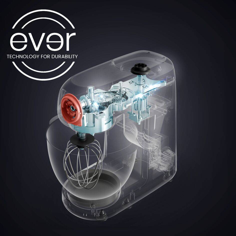 Bake Partner съчетава здрави, дълготрайни материали, интелигентна конструкция и усъвършенствана технология за изпълнение, което надминава всякакви граници! Нашата нова технология за печене EVER автоматично регулира скоростта и мощността според консистенцията на тестото, като осигурява перфектни резултати и дълготрайна производителност във времето. Здравата метална предавателна кутия е проектирана да ви съпътства по пътя на печенето с качество, което е създадено, за да издържи ден след ден, ястие след перфектно ястие.