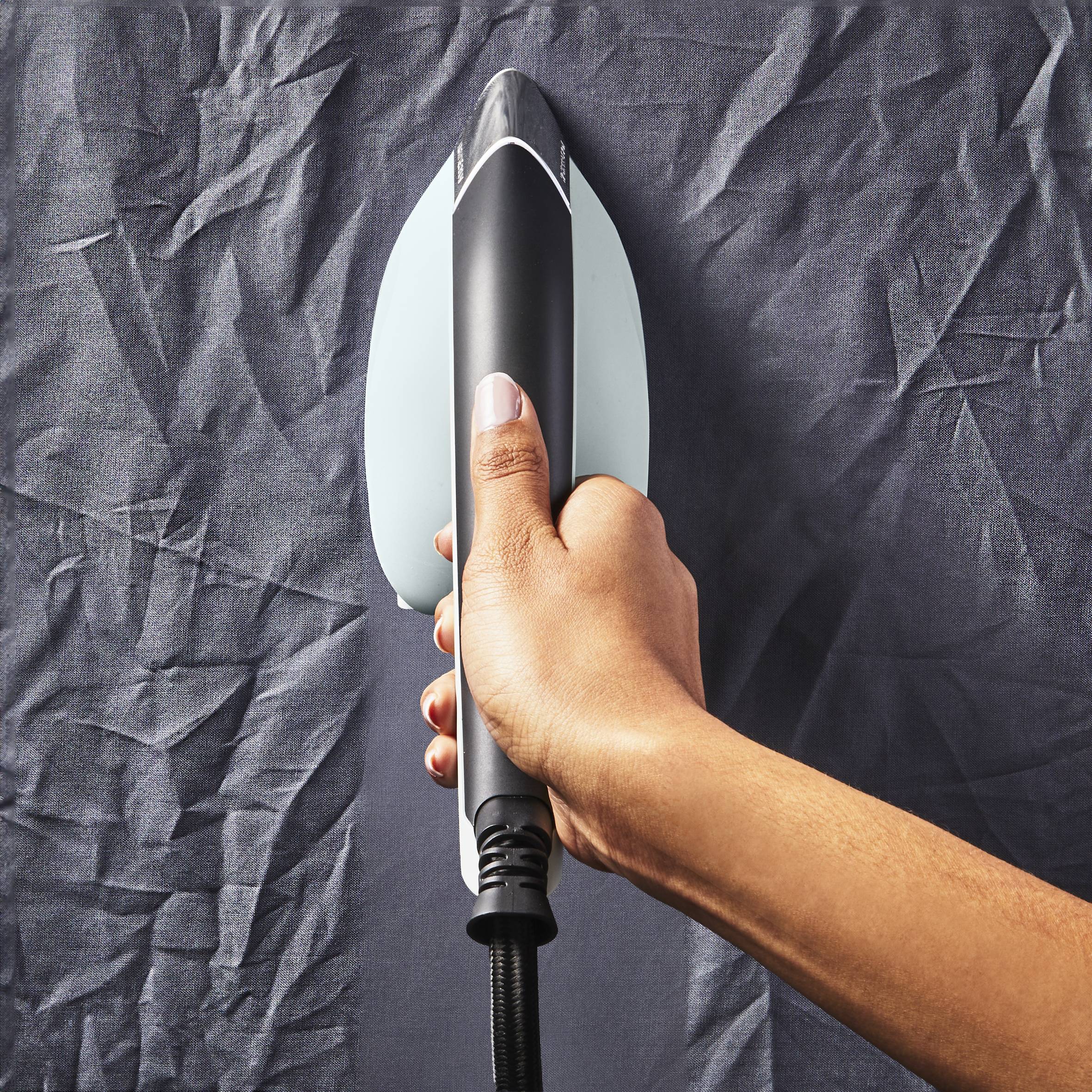 2-в-1 парна ютия и уред за гладене на дрехи с пара, за да отговори на всички ваши нужди от грижа за дрехите, от корекции до упорити бръчки Ефективни резултати върху всички подходящи за гладене тъкани, изправени и хоризонтални, с профилиран връх за покриване на труднодостъпни места Опростена и изключително лека ютия (750 г) за безпроблемна работа както във вертикално, така и в хоризонтално положение Грижа за дрехите, пестяща време: Мощен парен удар до 180 г/мин, 30 секунди време за загряване и без необходимост от регулиране на настройките Функции за безопасност: Интелигентният дизайн държи ютията изправена, дори когато не се държи, с автоматично изключване, функция против прокапване и други Основата на резервоара за вода от 400 мл е създадена за дълготрайно гладене, предлагайки до 45 минути гладене без доливане Аксесоарът за подложка за гладене предлага удобна, пестяща място грижа за дрехите, без нужда от самостоятелно гладене дъска 100% от нашите ютии са предварително тествани (което означава, че някои устройства може да имат капки вода или конденз във водния резервоар)