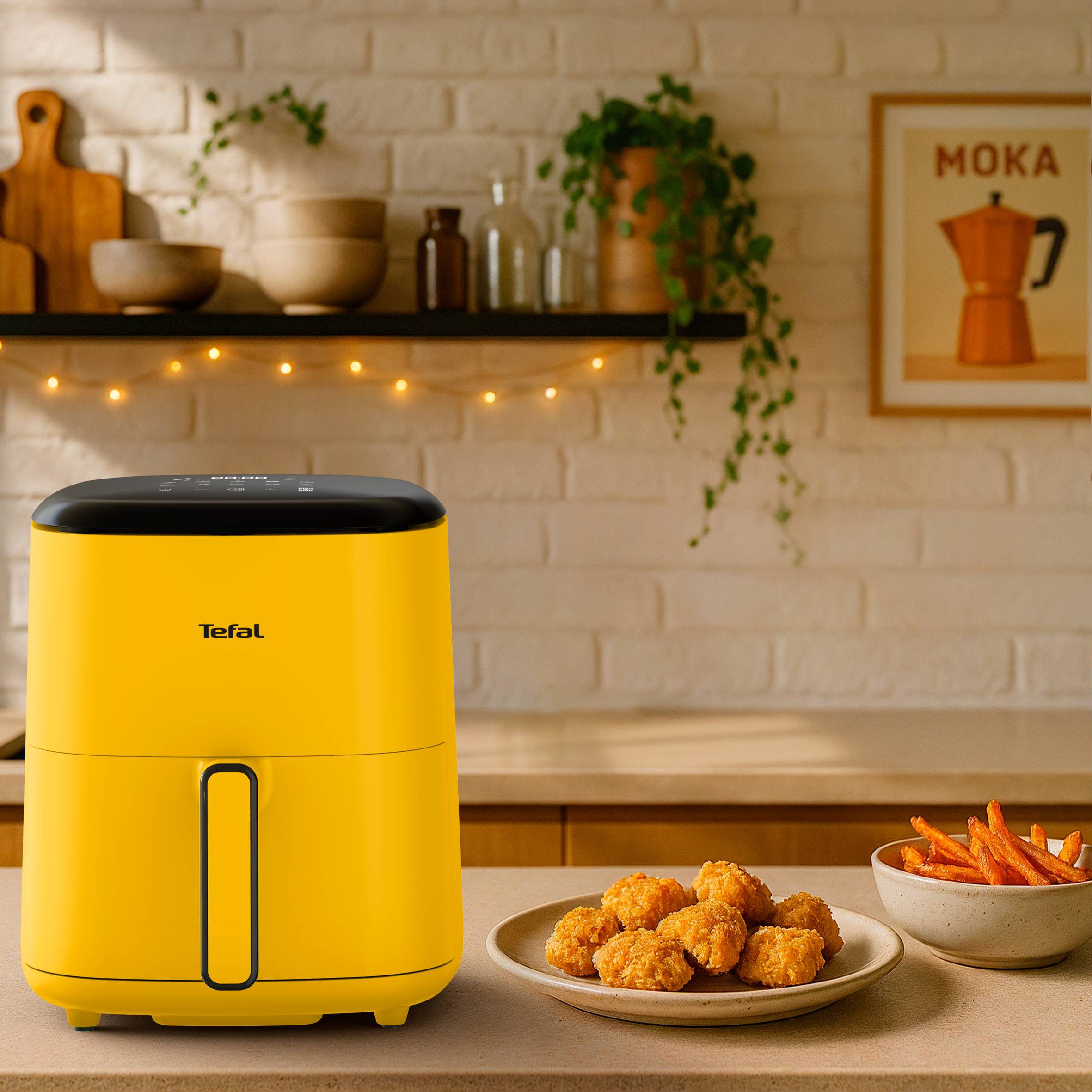 Представяме ви Tefal Easy Fry POP - цветният уред за готвене с горещ въздух, който отговаря на вашия стил. Компактен и красив, но и лесен за употреба и почистване с 35 листа хартия за печене в комплекта. Неговата голяма вместимост 5 л/1 кг и 10 автоматични програми са идеални за споделяне на вкусни и здравословни ястия с приятели. Вдъхновете се от ексклузивните колекции от рецепти в приложението Tefal.