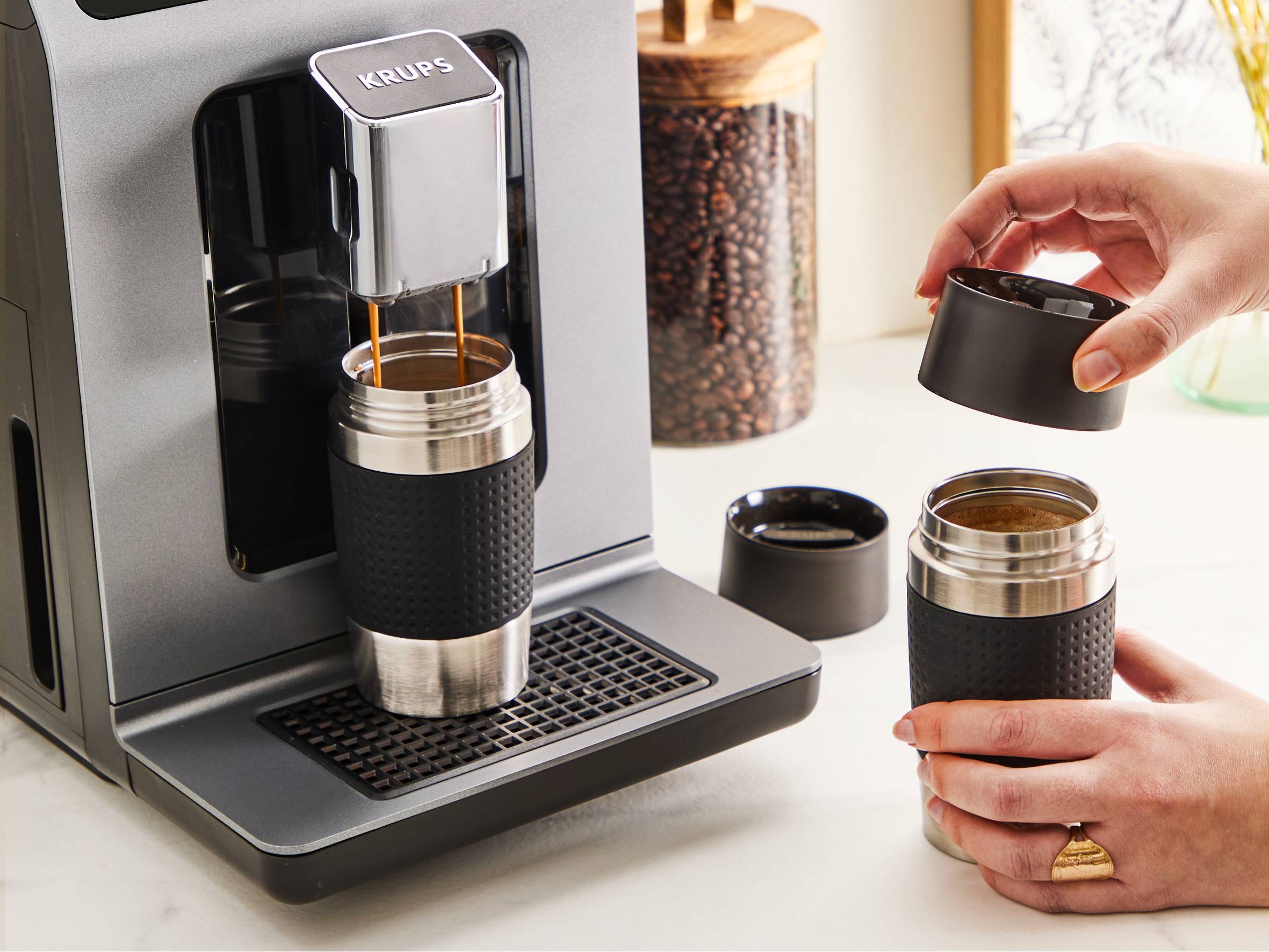 Удобната функция на Evidence за приготвяне на кафе, която ви позволява да започнете приготвянето му с едно докосване, за вкусно кафе, приготвено до съвършенство направо в чашата ви за пътуване. Можете да зададете идеалното количество, с което да напълните чашата си за пътуване - идеално за пътуването до работа в забързаните сутрини или за всеки друг път, когато искате да вземете кафето си със себе си!