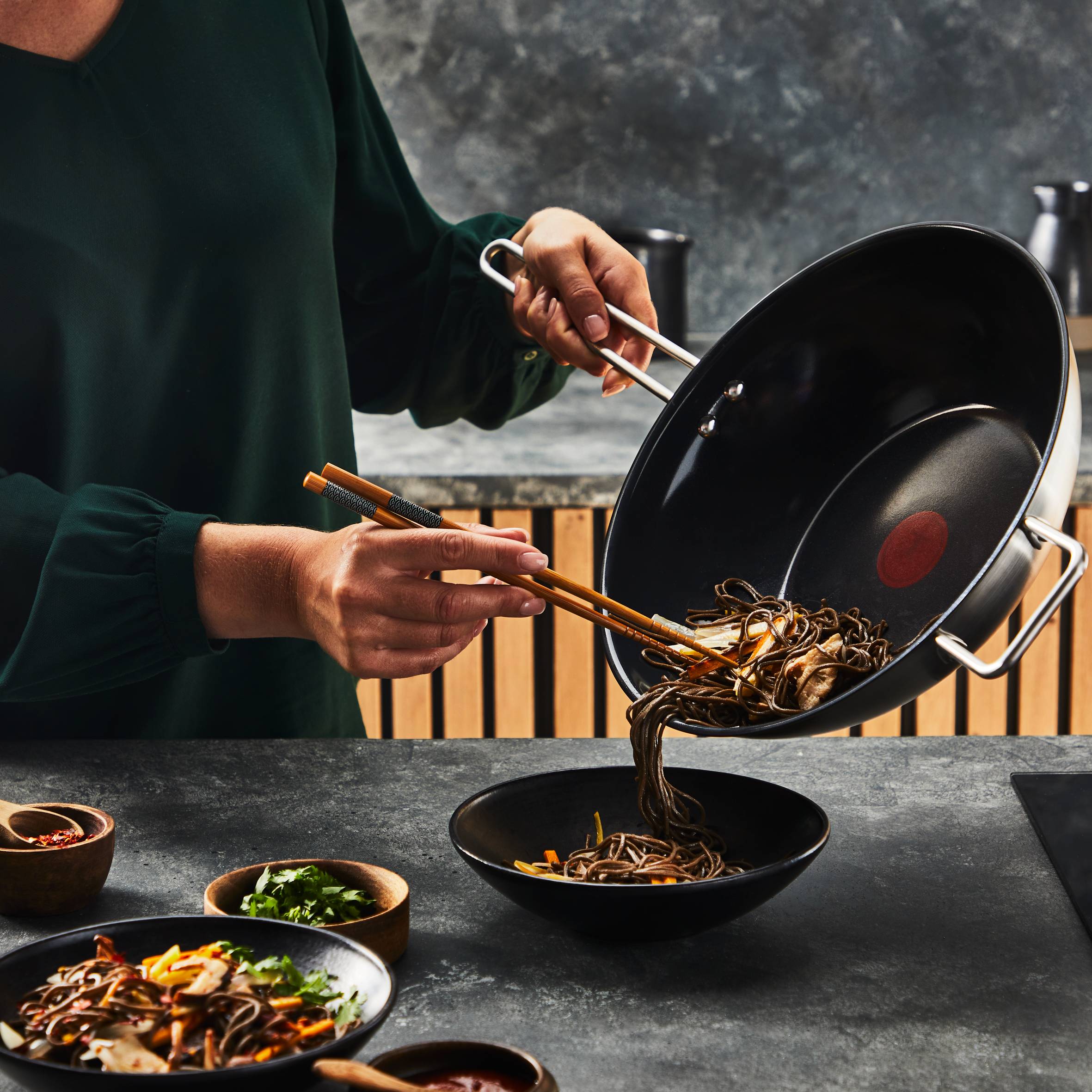 Незалепващо керамично покритие от ново поколение за безпроблемно плъзгане ден след ден и лесно здравословно готвене с ниско съдържание на мазнини Индикаторът за топлина Thermo-Signal™ променя цвета си, когато тиганът достигне идеалната начална температура, за безупречно запичане Напълно рециклируем уок тиган с корпус, изработен от 90% рециклирана неръждаема стомана — научете повече на ecodesign.tefal.com Съдове за готвене с първокласно качество с 10-годишна гаранция, с безопасен, здрав дизайн и без риск от повреда с течение на времето Изчистени линии с минималистична нотка и шведско вдъхновение, проектирани от Матиас Микаелсон Дебела 3-слойна основа за отлична дифузия на топлината и равномерни резултати при готвене всеки път — съвместима с всички котлони Изключително устойчива дръжка без празнини за по-голяма безопасност и по-лесно боравене по време на готвене Номер 1 в света (Източник: Euromonitor International Limited, издание за дома и градината 2024 г., стойност на дребно на марката RSP, данни за 2023 г.)