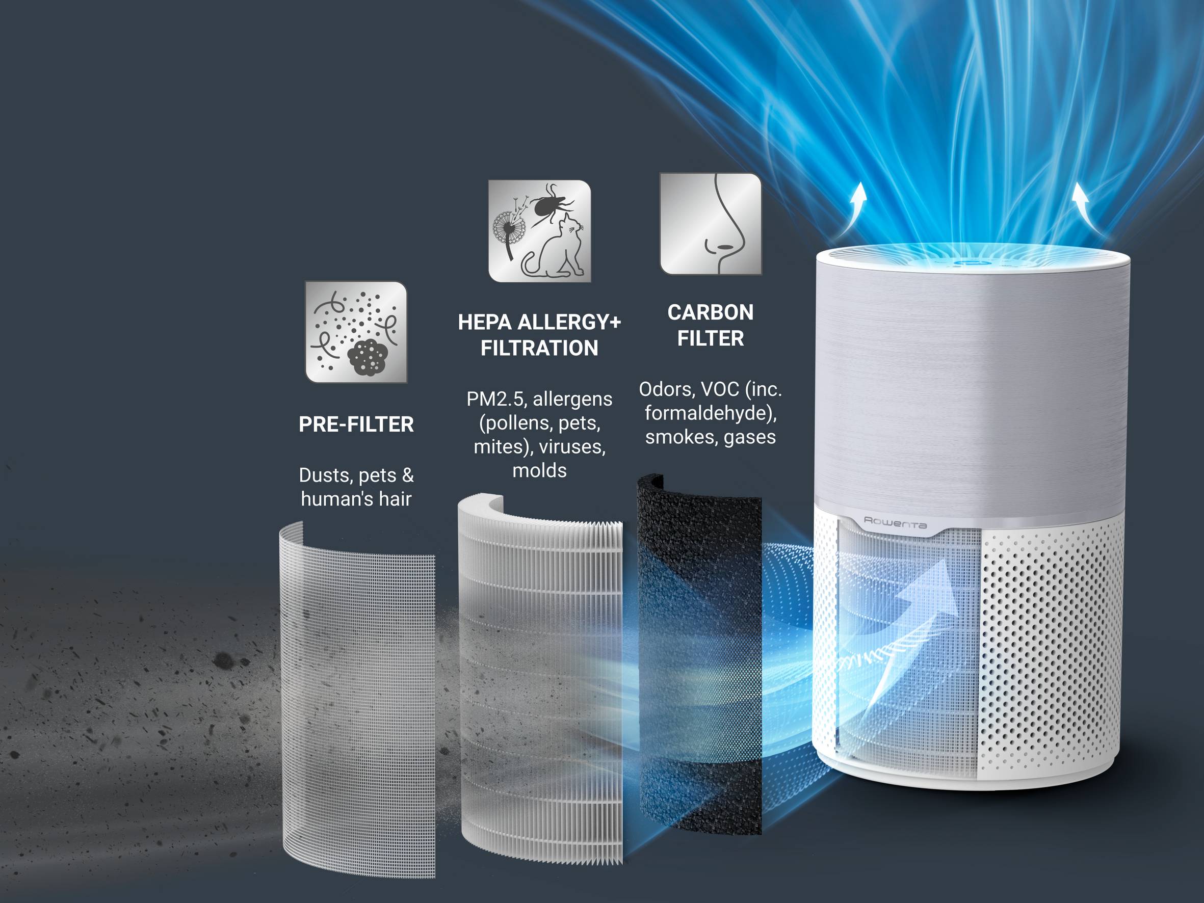 Tefal Ви разкрива новите продукти от Rowenta, бранд на Groupe SEB! Вижте Rowenta Pure Air Compact, пречиствател за въздух, високоефективно пречистване на въздуха, комфорт без алергии, PU2220F0 и купете директно от {{website}}