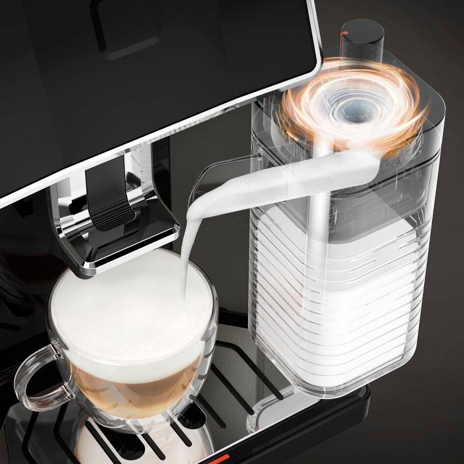 Внимателно проектиран до последния детайл, перфектно интегрираният съд за мляко е снабден с безопасно заключване за безупречна прецизност и повишена надеждност.